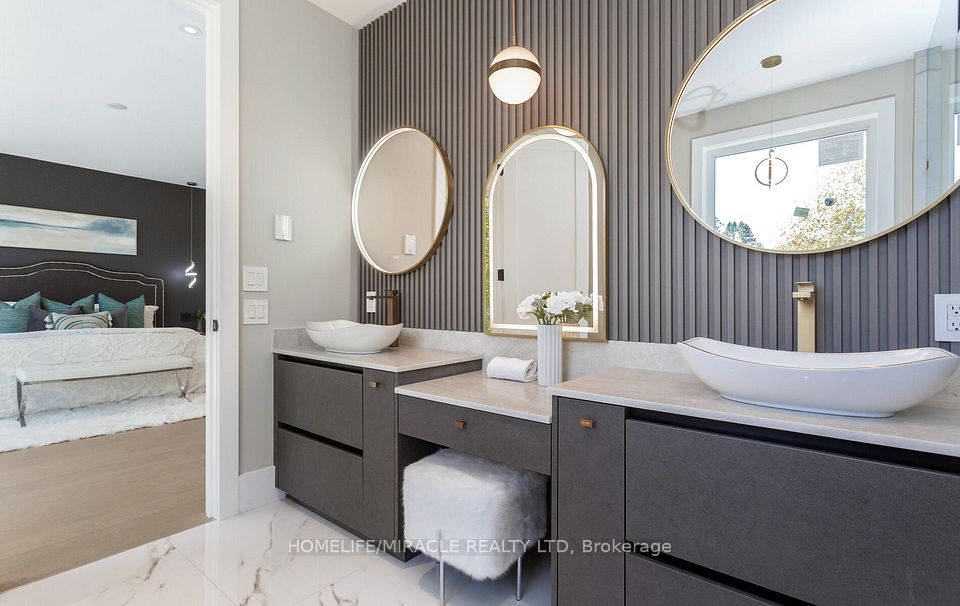 LUXURY CUSTOM SMART HOME ! Welcome to 55 Adanac Dr located in a prestigious neighborhood where ultra modern luxury meets unmatched convenience! Step into this brand-new, never lived-in detached home, a rare gem featuring cutting-edge design and smart technology that redefine luxury living in todays era. Boasting approx 5,000 sq ft of thoughtfully designed space, this expansive home offers an open-concept living and dining area, along with a versatile, separate family room with decorative wall thats perfect for entertaining, ideal for larger families. Enjoy the convenience of six parking spots with no sidewalk. Soaring 10 ceilings & floor-to-ceiling windows flood the space with natural light & offer stunning, unobstructed views. Chefs Dream designer kitchen cabinetry with ample storage, LED lights, sleek waterfall island with breakfast bar, full-size hidden pantry, Built-in professional oversized appliances 66 fridge/freezer, 48 gas cooktop,1,000 CFM range hood perfect for preparing aromatic dishes. Warm 3000K lighting fixtures, pot lights throughout create a cozy, inviting ambiance, while custom designer wood accent walls add a dramatic WOW factor. 2nd floor with 9 ceiling, enormous skylight fills the upstairs with natural light, Four spacious bedrooms with ensuite bathrooms and custom closets. Convenient 2nd floor laundry room. The true showstopper primary suite features, private balcony to enjoy fresh air and sunlight dual custom His & Hers closets. Luxurious ensuite with heated flooring, glass standing dual showers, vanities, soaker bathtub, smart toilet seat for personalized comfort. Heated flooring in all bathrooms, garage, front porch & entrance. A Potential fully finished walkout basement has 9 ceilings. An in-law suite with personal recreation room, wet bar, ensuite with heated flooring throughout ensuring year-round comfort. Professionally designed landscaping by Terra Stone driveway paver with glass railing wooden deck & much more to explore!